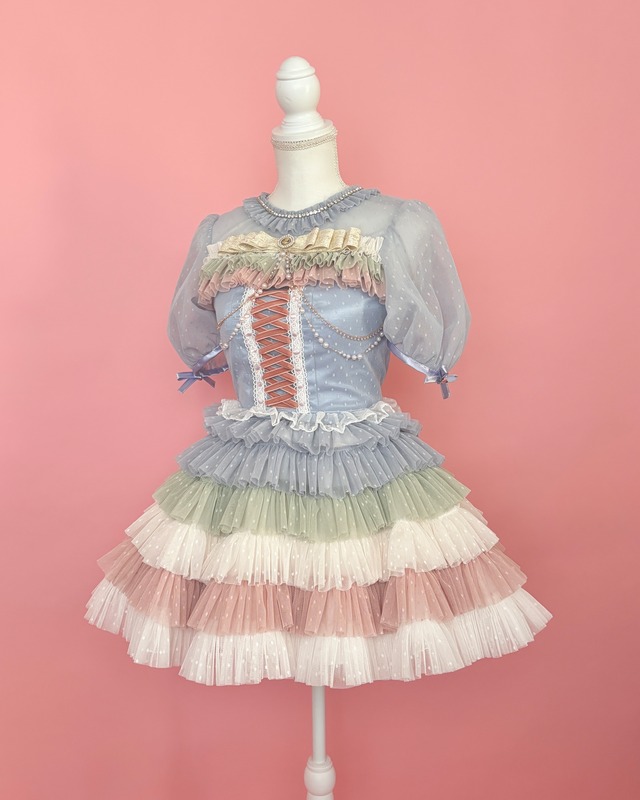 【セット内容】 ・トップス×1 背中ファスナー ・スカート×1 後ろファスナー/後ろゴム 【サイズ】 ▼トップス 着丈:背中約25cm(上下フリル部分除く) バスト:約82cm ▼スカート スカート丈:約39cm ウエスト:約58-66cm ※若干の誤差がある場合がございます。 【トルソーサイズ】 バスト:78cm ウエスト:58cm 【注意事項】 ・ご使用のディスプレイの環境によって、色味が異なって見える場合がございます。 ・こちらの商品は全てハンドメイドで製作されていますので、お取り扱いはご丁寧にお願い致します。 ・トルソーはパニエを着用しております。